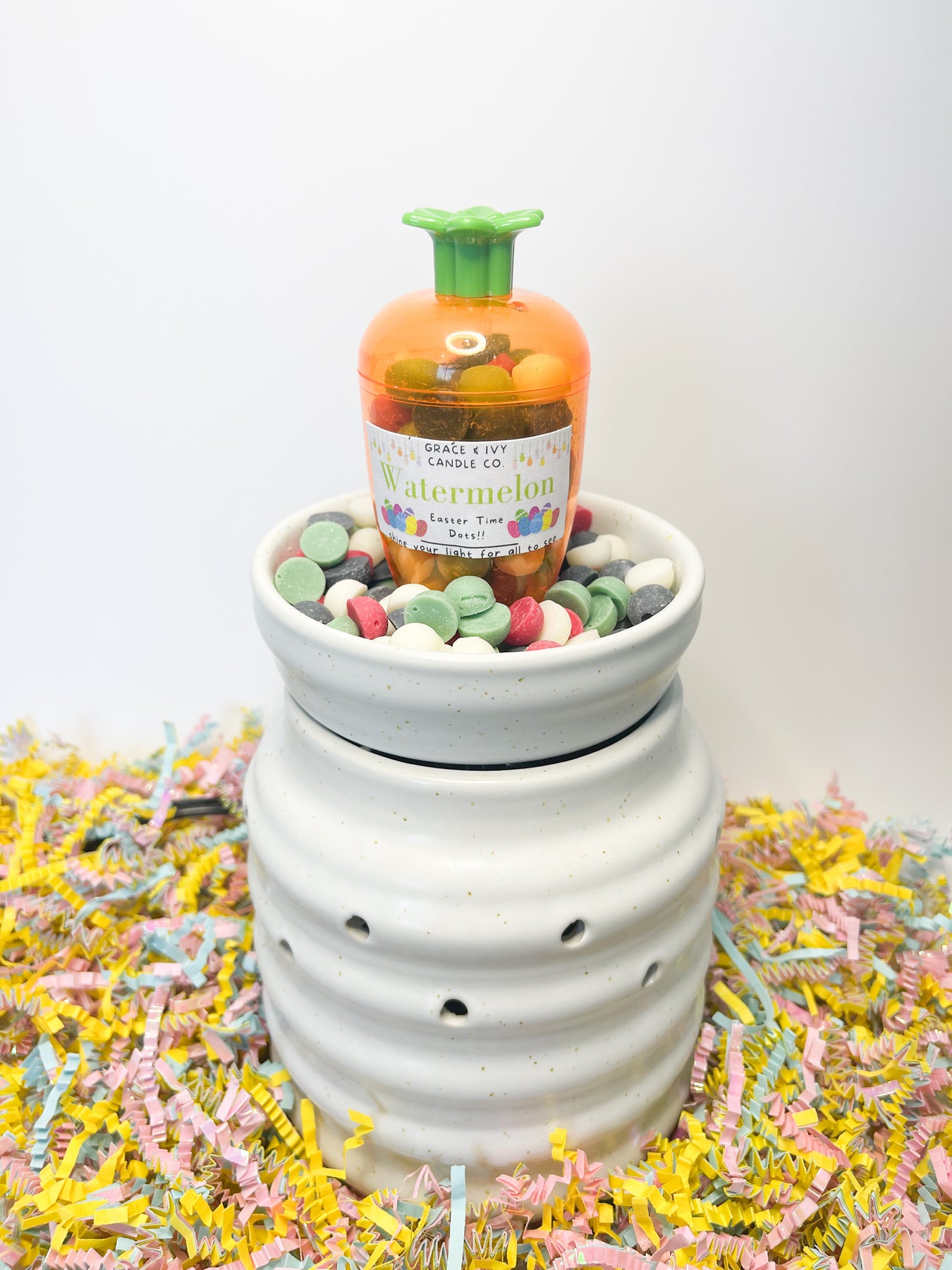- Our 2oz Easter Carrot is in our Watermelon Sunshine. White, red, green and black wax dots all scented in our fresh-cut watermelon, honeydew and sugar scent.