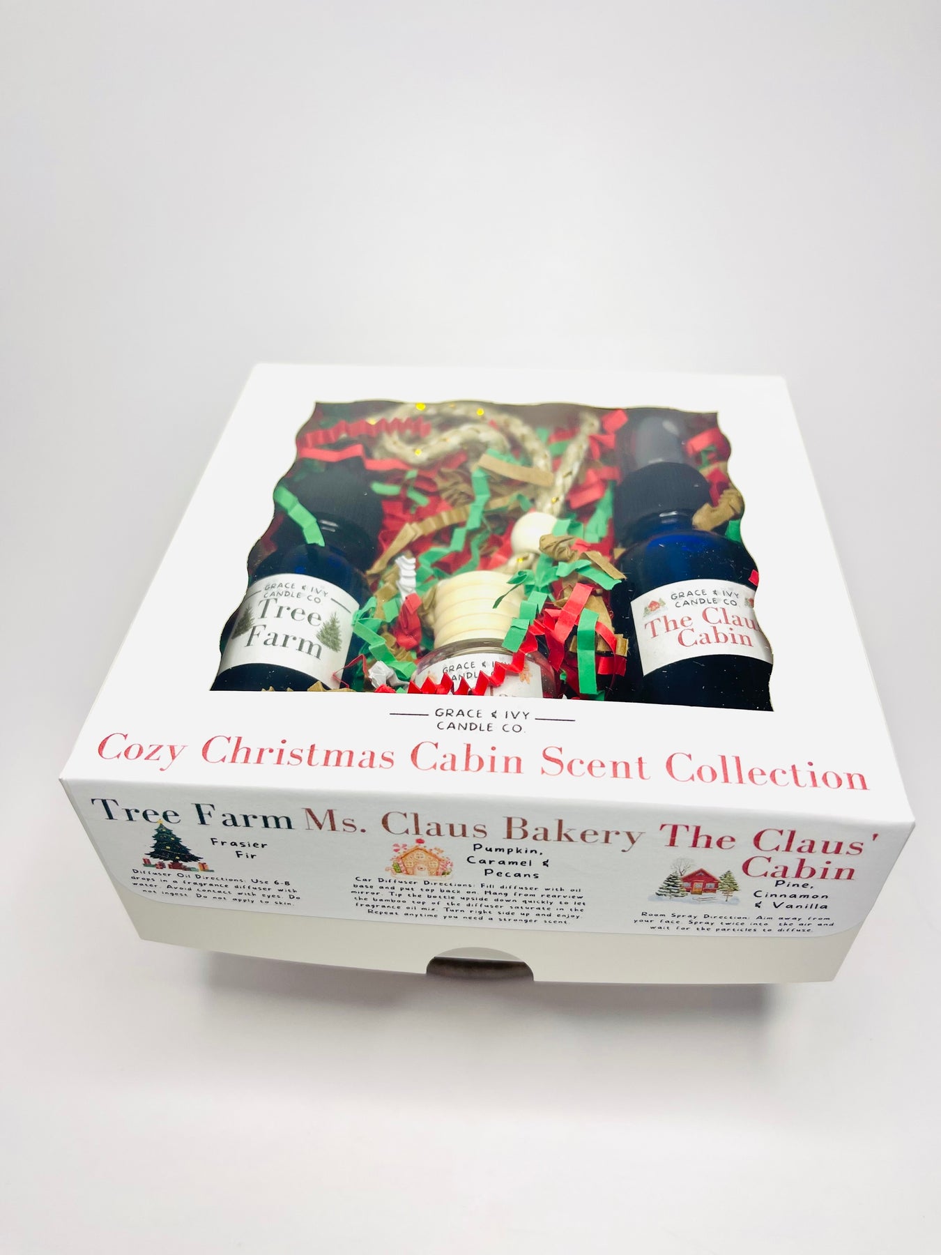 The Claus Cabin Room Spray • Ms. Claus Bakery Car Freshener • Tree Farm Diffuser Oil